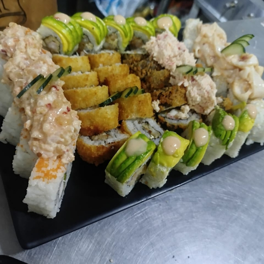 50 makis ( Gratin de camarón / Gratin de calamar / apanado / Rocka and roll/ spider roll)
