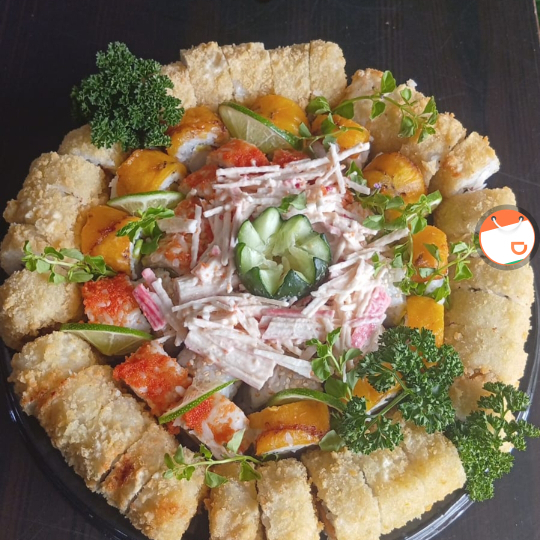 60 makis + 2 croquetas de cangrejo + 4 kani apanados.