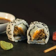 Camarón panko, vegetales tempura, aguacate, queso crema, totalmente apanado.