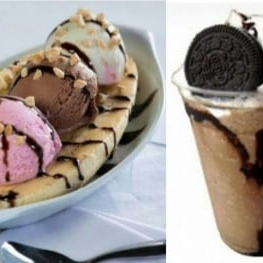 Para 2 : deliciosa maltedada de helado de tu sabor favorito acompañado de : salsas - baquillo - 1 toping como ( mini chocorramo - oreo - chocolatina jet - galleta mini chips - quipitos o gomitas )