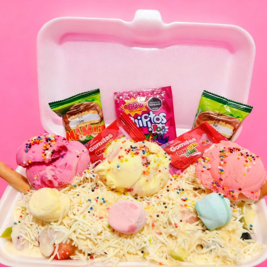 DISFRUTA DE UN ANTOJO DE HELADO PARA COMPARTIR Y ELEJIR TUS GOLOSINAS FAVORITAS : ( 3 ) BOLAS DE HELADO - ACOMPAÑADAS DE ( 1 ) TOPPING - GOMITAS - MASMELOS - SALSAS Y ADEREZO TODO ESTO A ELECCION DE TU PALADAR .