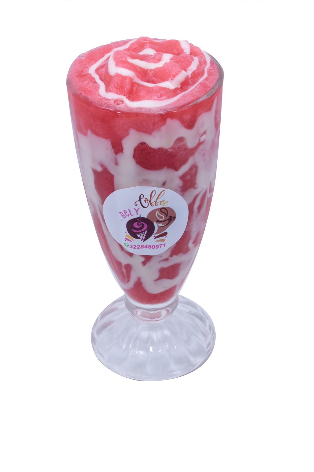 Fresa, y crema, 1 toppings, salsa de leche condensada o Herheys de chocolate, chispitas, maní. Vaso de 12 onzas (no incluye helado)