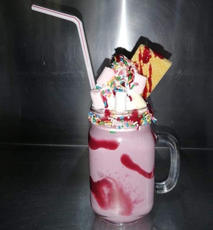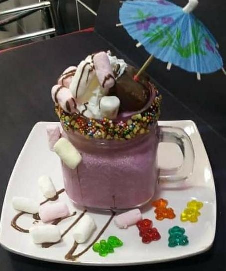 Deliciosa malteada a base de helado decorada con 1 mini brownie ,crema chantilly, masmelos,salsa de chocolate,garjeas.