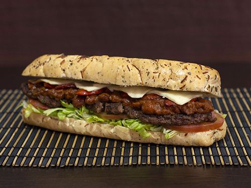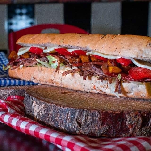 deliciosa carne de res al horno, queso mozarella, vegetales frescos y salsa de ajo