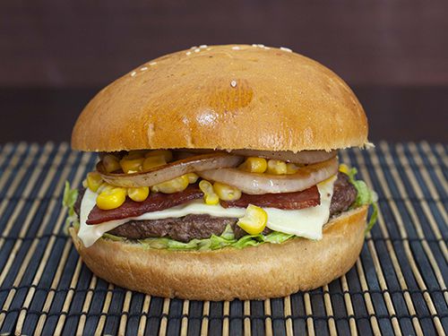 Carne artesanal de 150gr, tocineta, maíz tierno, queso mozzarella, cebolla grille, lechuga y salsa de ajo.