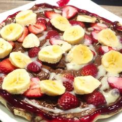 Pizza personal (4 porciones) con nutella, fresas, banano, leche condensada, salsa de mora