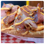 Dog Delivery Bacon,Salchicha Americana, papa chip, Tocineta, Salsa De Queso Cheddar, cebolla, tartara,salsa rosada, queso, jamon, huevo de codorniz