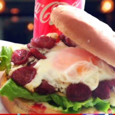 Hamburguesa Montañera,carne pura res, Queso, Huevo frito, Chorizo, pan , lechuga, tomate, cebolla, salsa de la casa