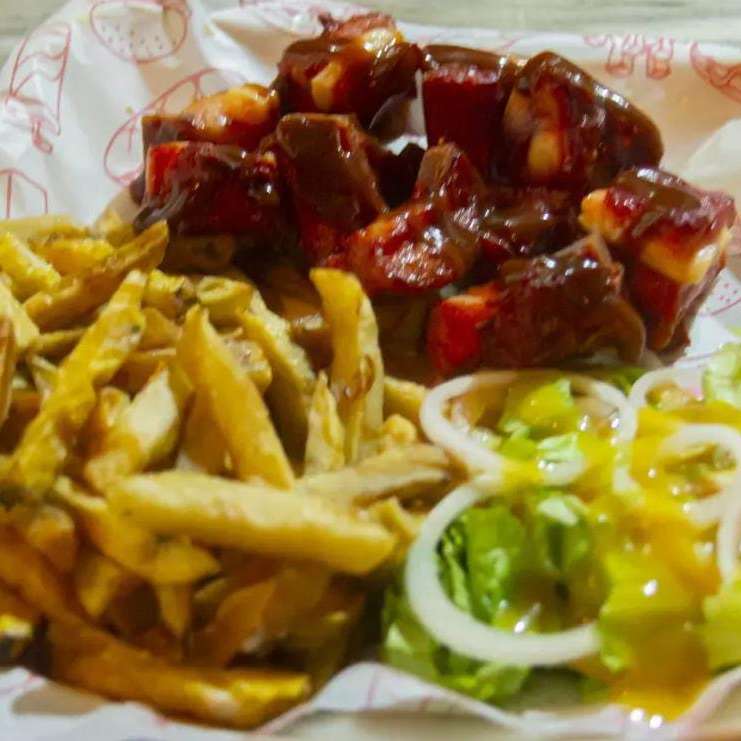 Costillitas En Salsas Bbq, Papa francesa, ensalada