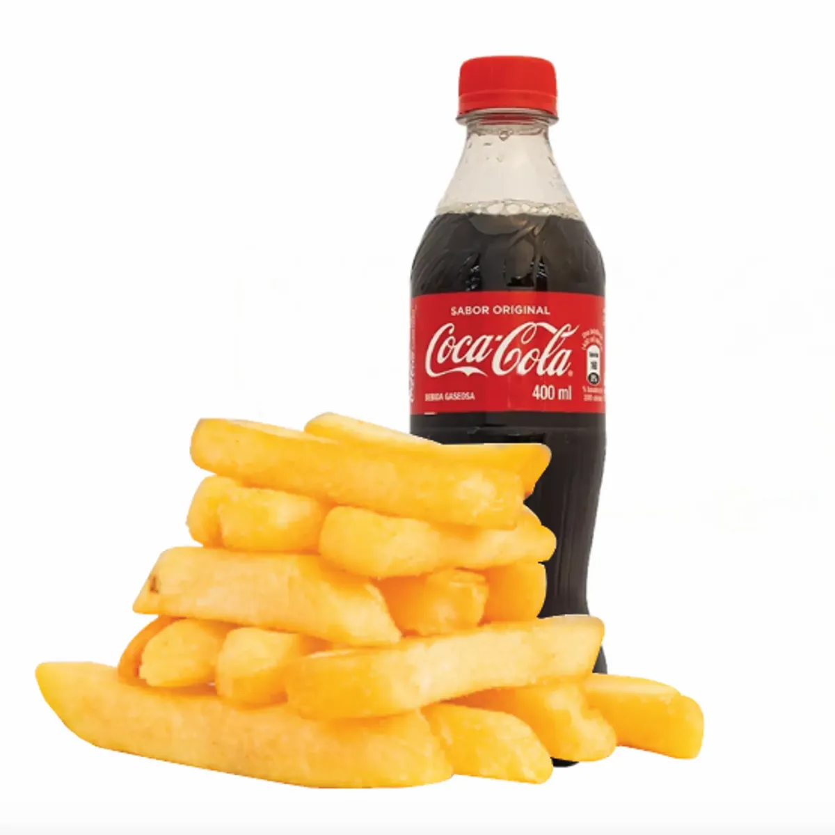 1 Porcion de papas a la francesa(140 gramos ) + 1 gaseosa según disponibilidad ( 400 ml ).Referencia Postobón