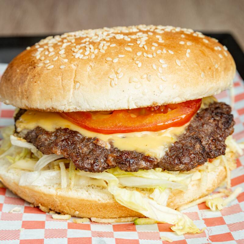 Hamburguesa con pan bimbo, carne 100 % artesanal de 120 gr, queso ,huevo de codorniz, lechuga, tomate