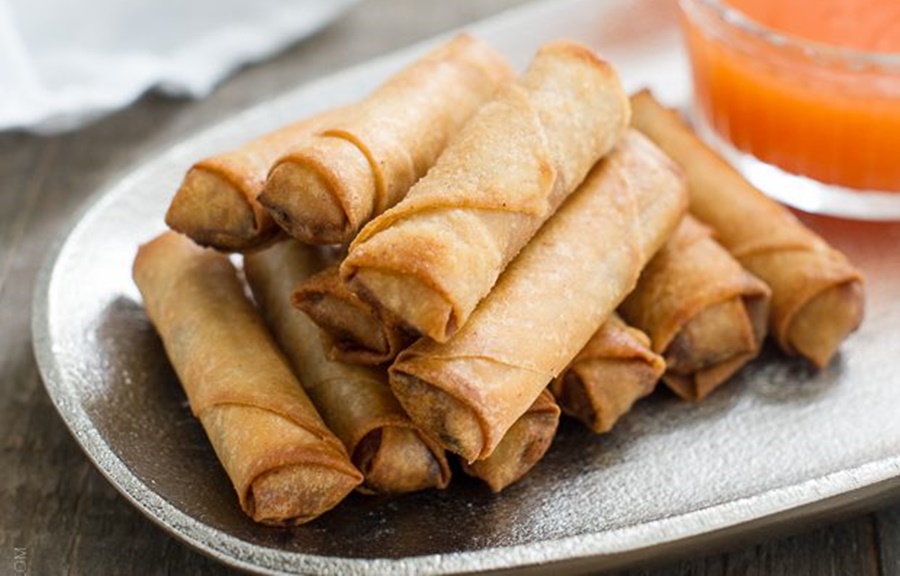 3 Rollitos Chino precocido relleno de pimenton, apio, cebolla larga, cebolla cabezona, repollo, jamon en trocitos y carne en trocitos