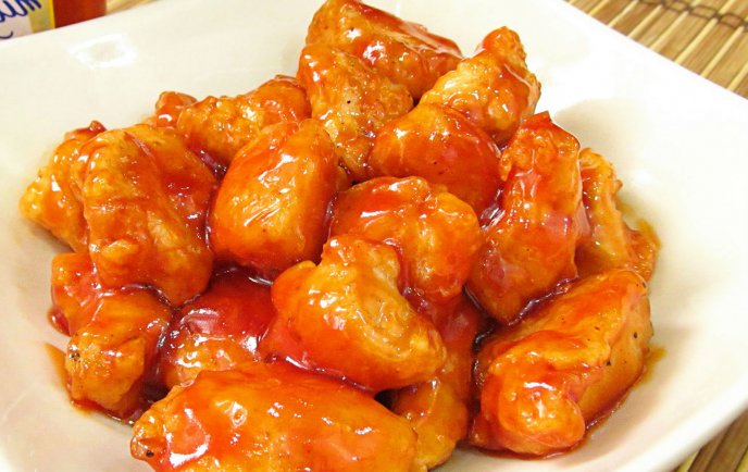 3 Bolitas de Pollo apanado bañado en Salsa Agridulce