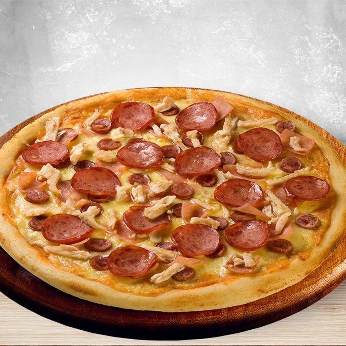 Queso mozzarella, salami, cabano jamón y pollo
