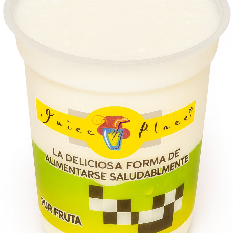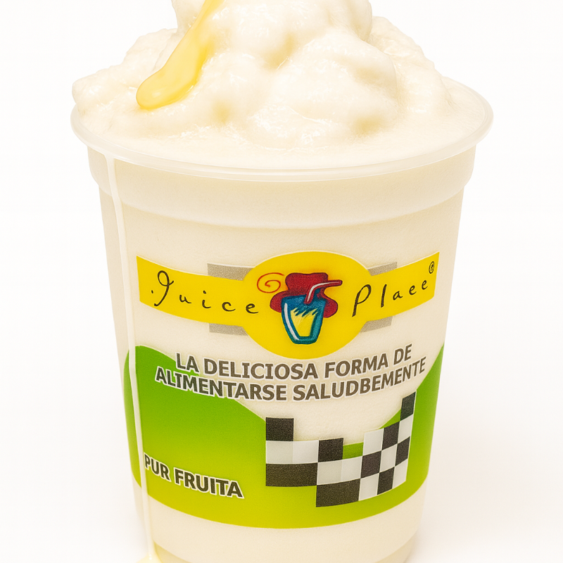 Granizado de crema de guanábana con trozos de fruta y leche condensada.