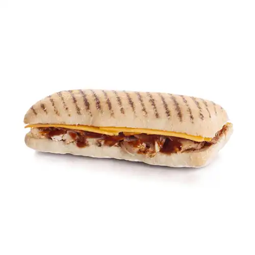 Pollo desmenuzado en nuestra salsa especial, queso mozzarella, lechuga, tomate y mayonesa.