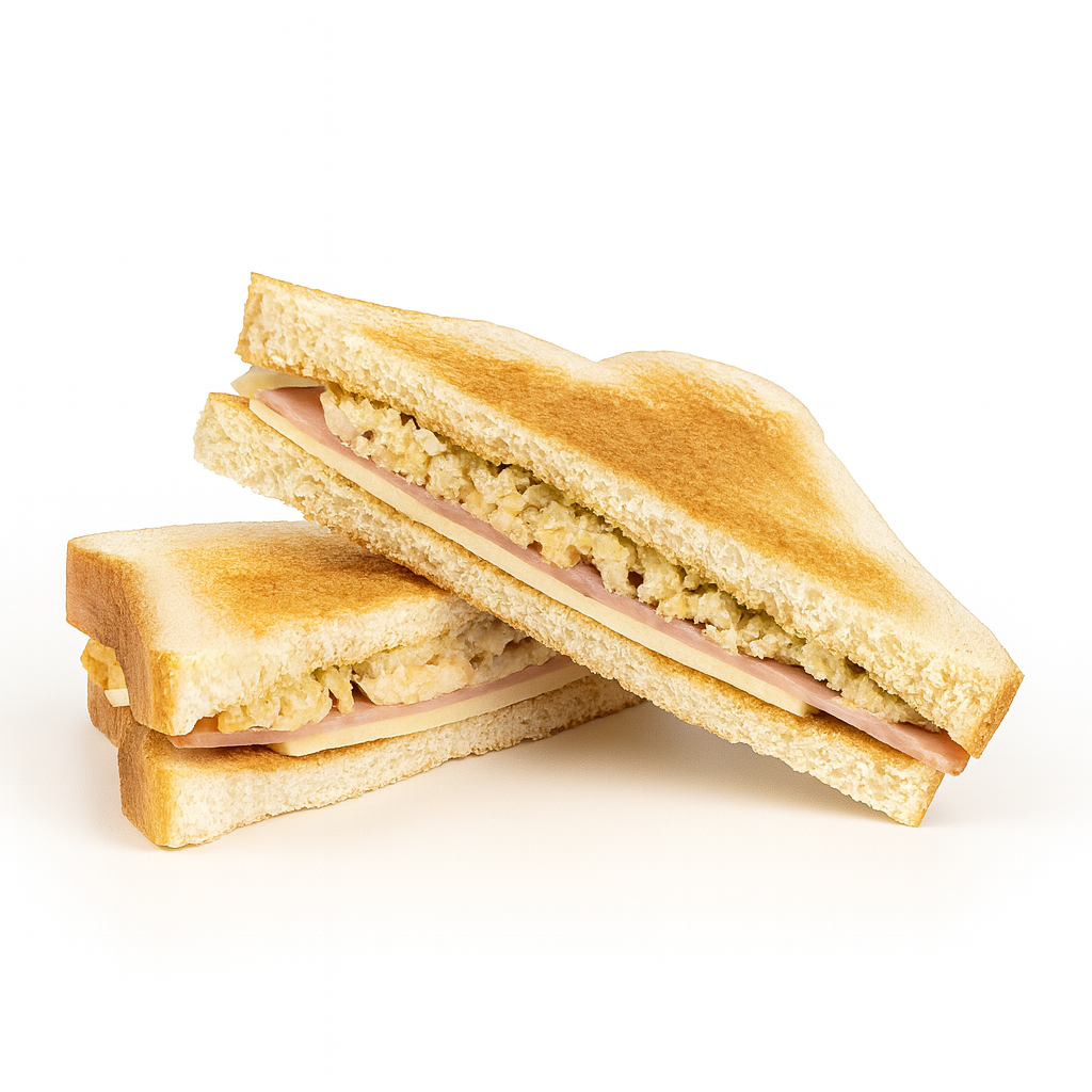 Dos tipos de jamón de cerdo, pollo desmenuzado en nuestra salsa especial, queso mozzarella, lechuga, tomate y mayonesa.