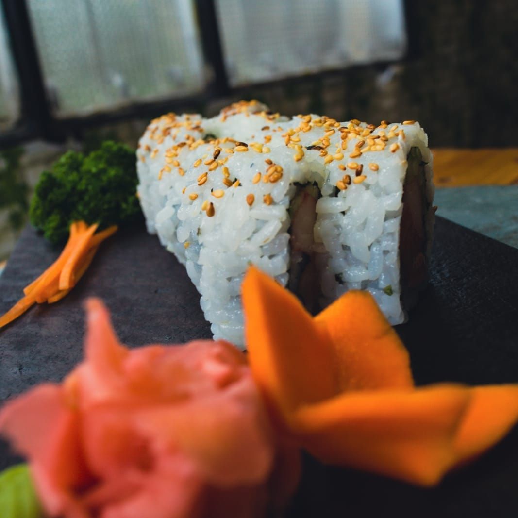 Salmón, atún, cangrejo,cebollin queso crema ,cubierto de masago y ajonjolí.