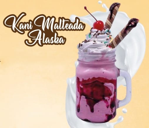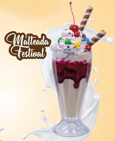 Malteada a base de helado con el sabor de su preferencia, salsa, chantilly, topping a elección y barquillo relleno