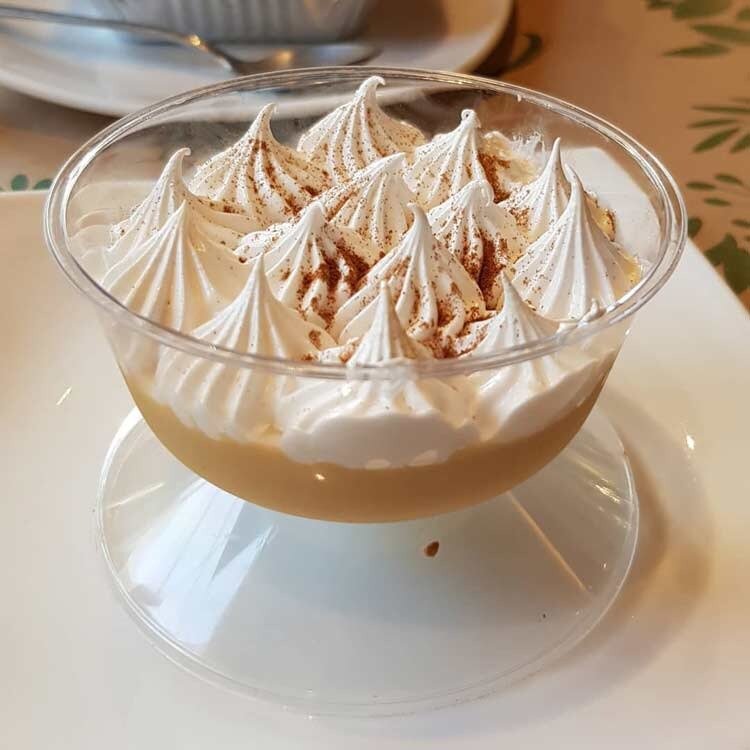 Postre tradicional peruano a base de natillas doradas, suave y sedosa, similar al caramelo, que luego se corona con un merengue de licor cremoso.