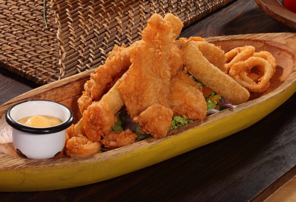 Mix de mariscos y pescado fresco apanado. Acompañados de ensalada y yuca con la salsa especial de la casa. Con este vas a la fija.