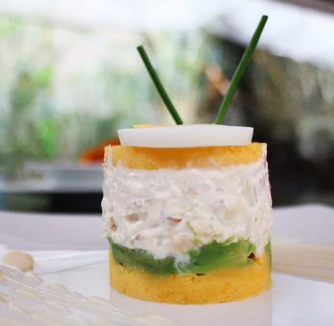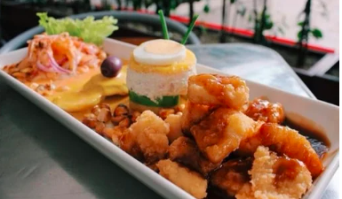 Ceviche crocante en salsa de tamarindo, causa limeña, papá a la huancaína y ceviche al rocoto.