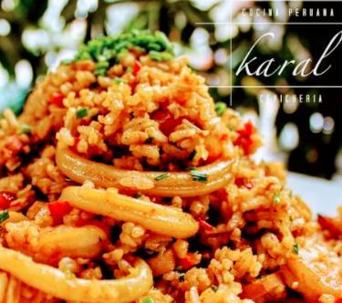 Arroz salteado al wok, al mejor estilo peruano, camarón, calamar, pulpo.