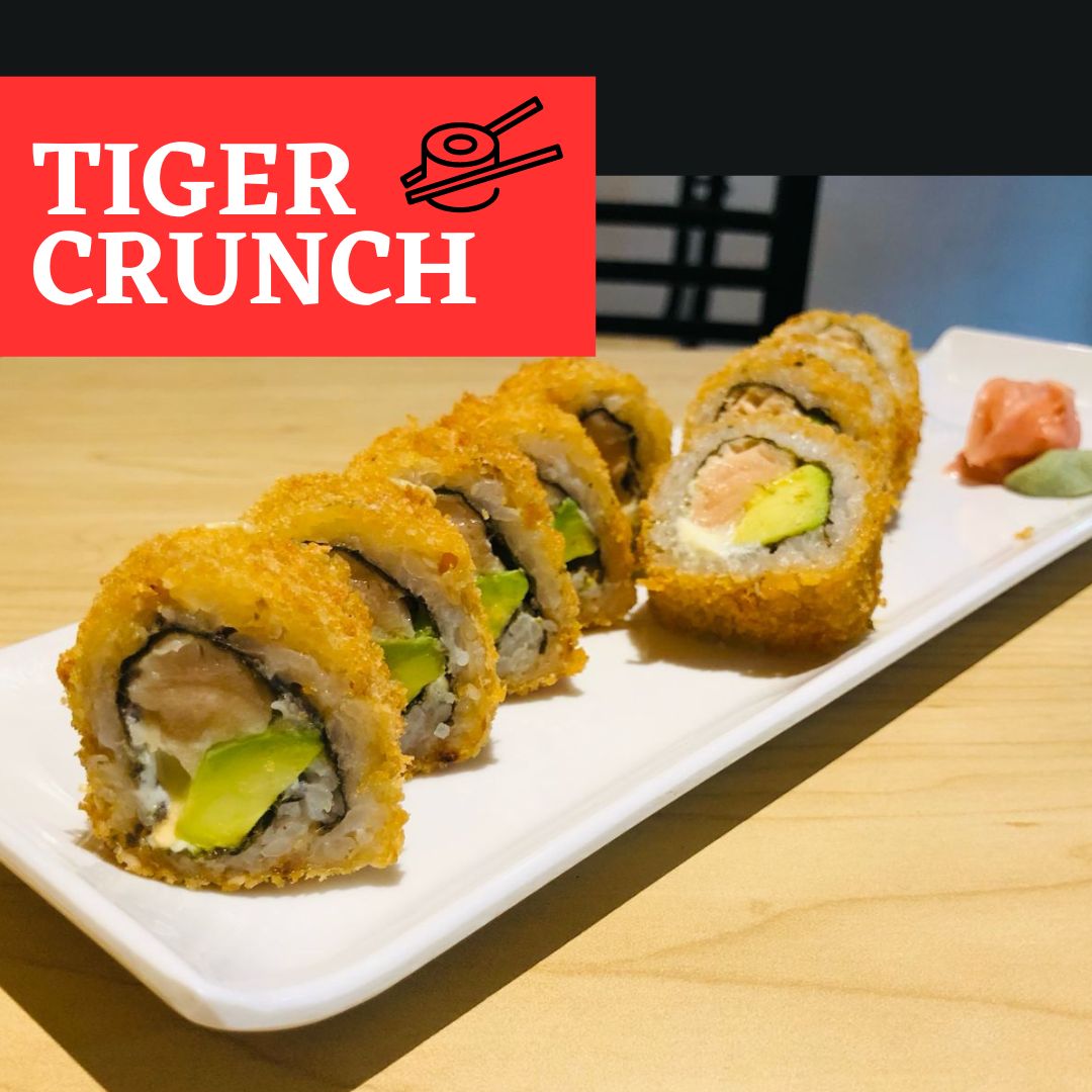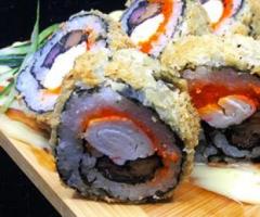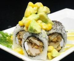 El sabor del sushi tradicional envuelto en una capa de tempura crunch con relleno de salmón, tuna, kanikama y masago.