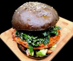 Burger de 150 g de pollo tempura sazonado con especias de la casa. Mix de lechugas bañadas con salsa cesar y queso parmesano, tocineta crujiente en julianas, todo dentro de nuestro tradicional pan japonés.
