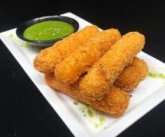 6 Deditos de queso campesino tempurados con nuestra receta de la casa y acompañamiento de salsa pesto.