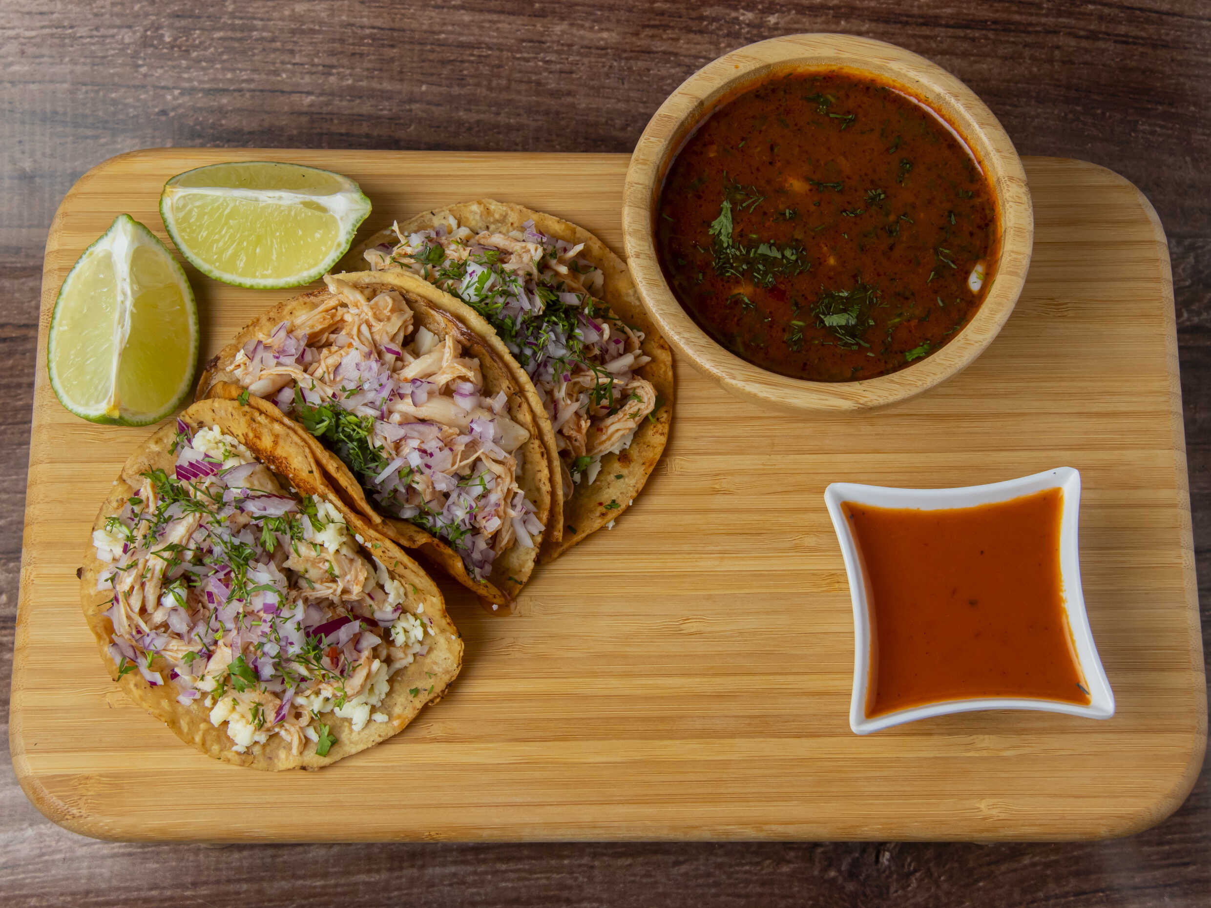 Taco de Tinga de Pollo*3 + Limón*1 + Caldo Para Tus Tacos*1