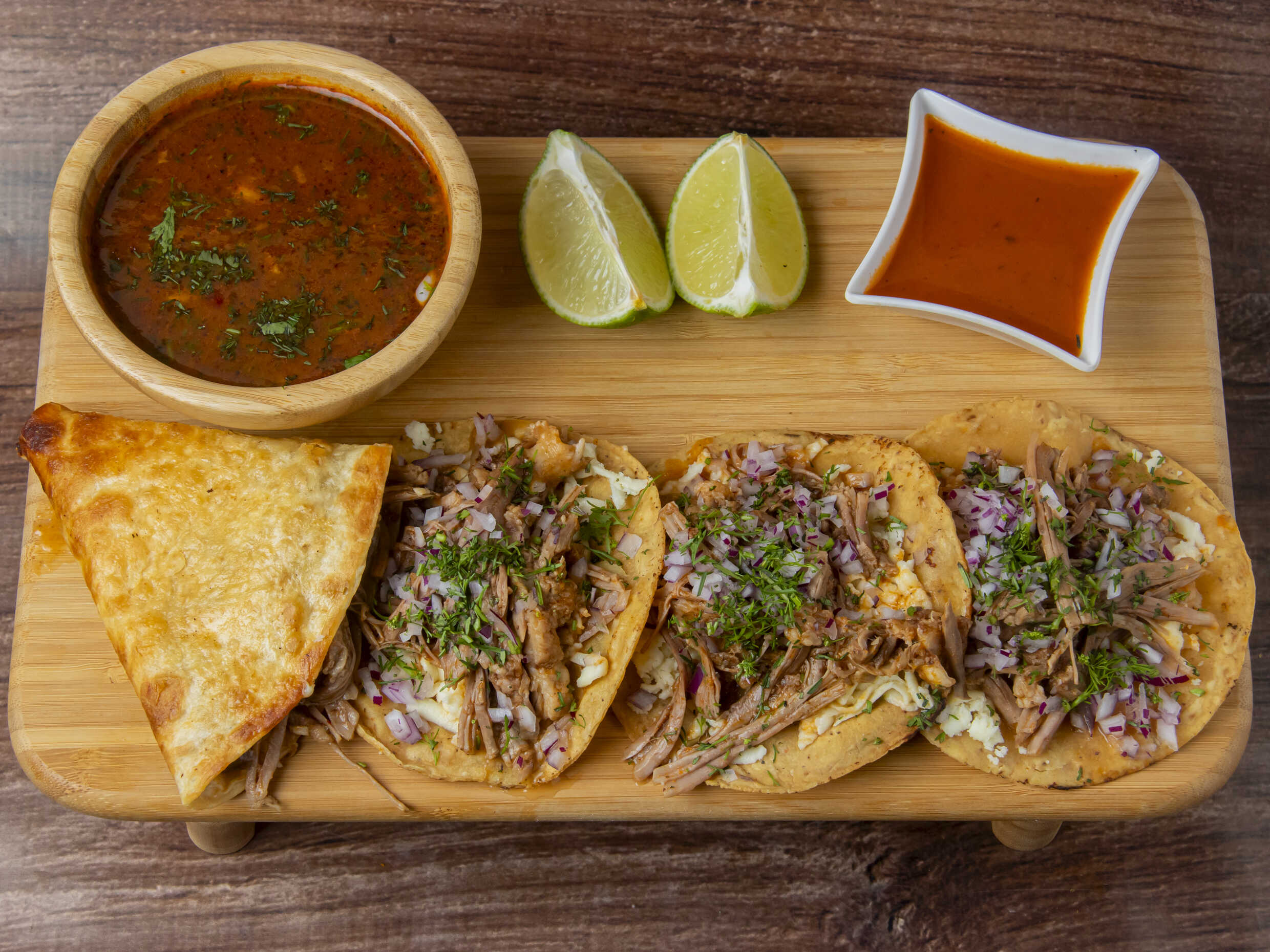 Quesuda de Cochinita*3 + Birria Personal*1 + Limón*1