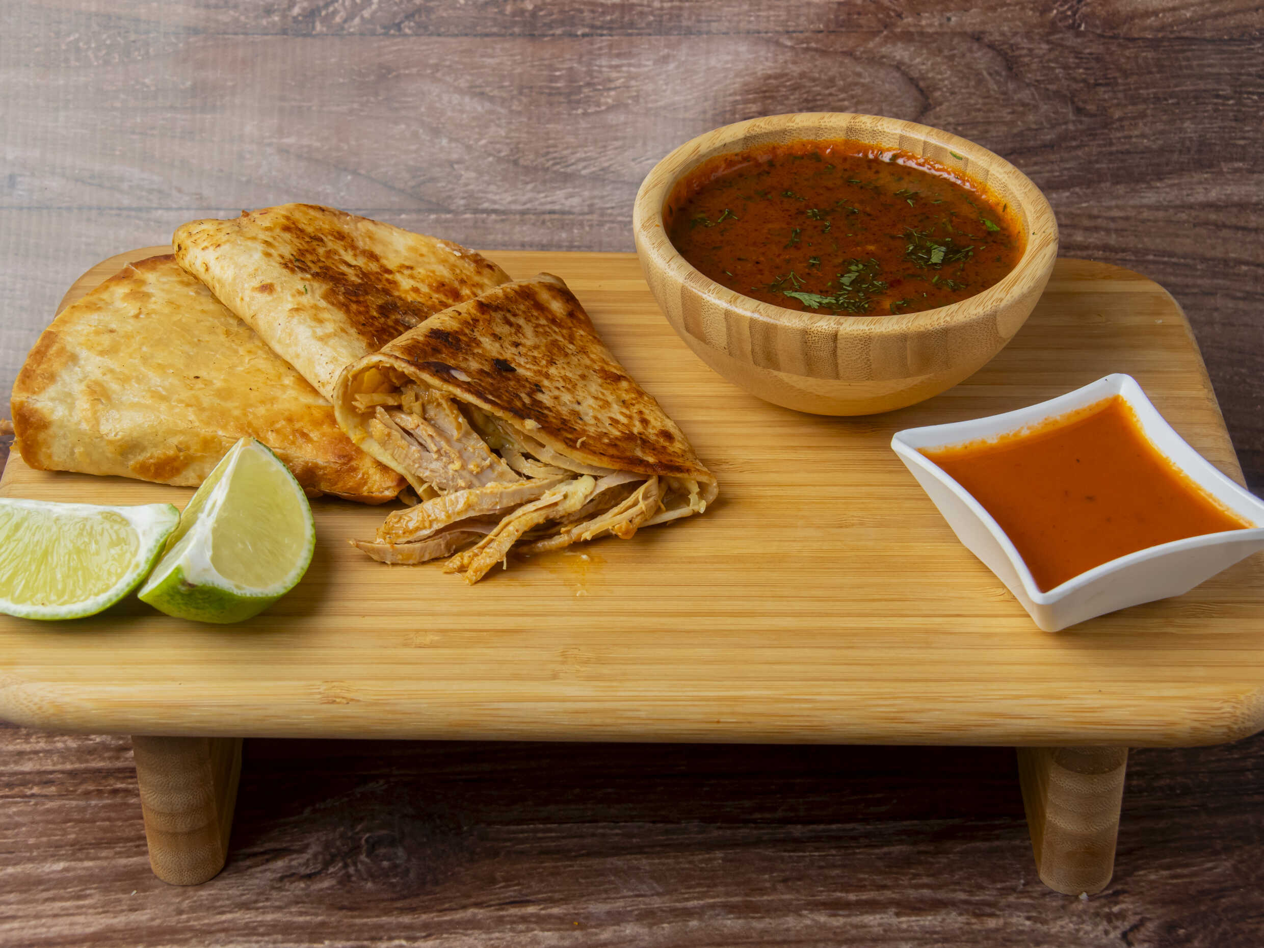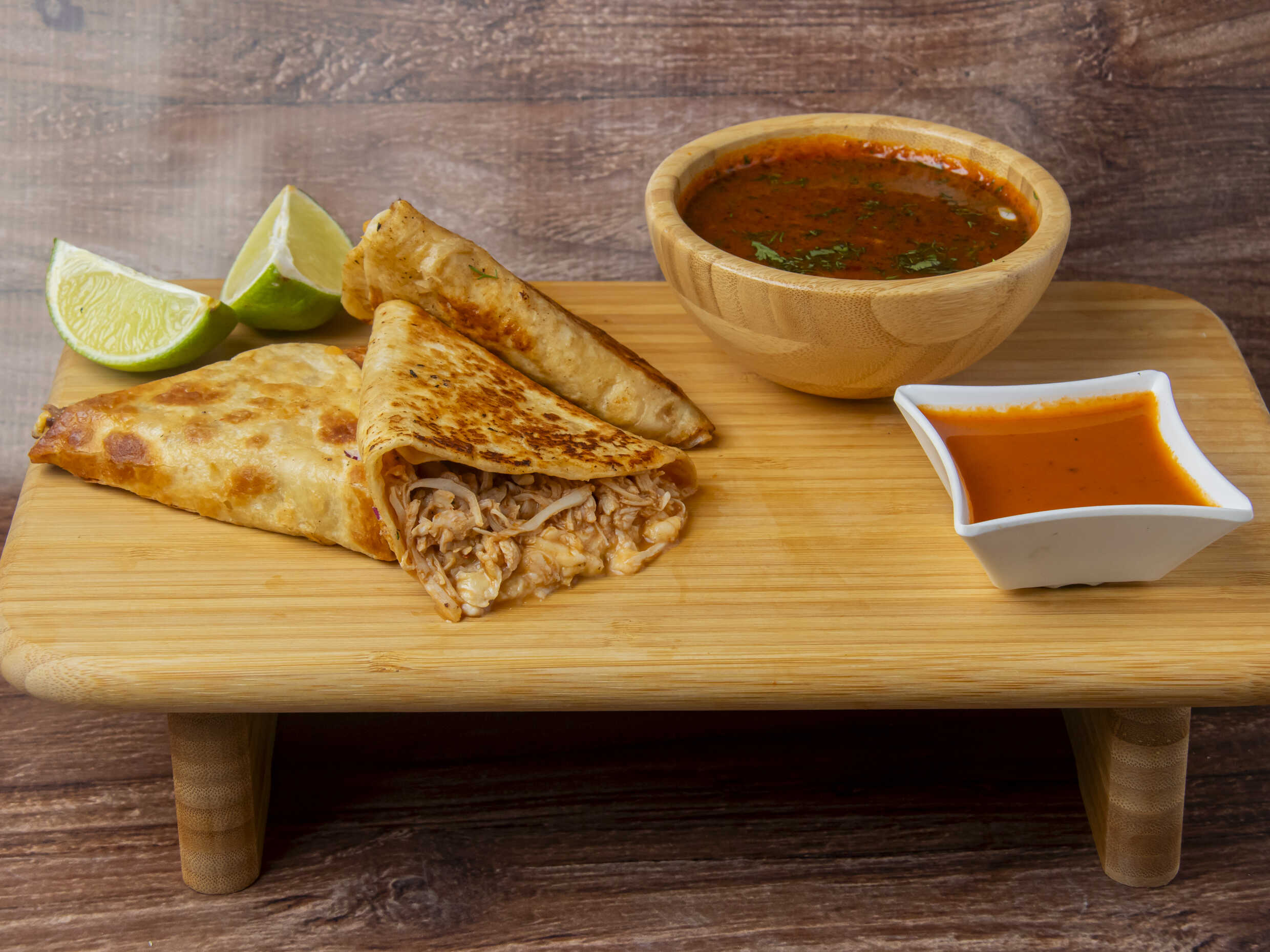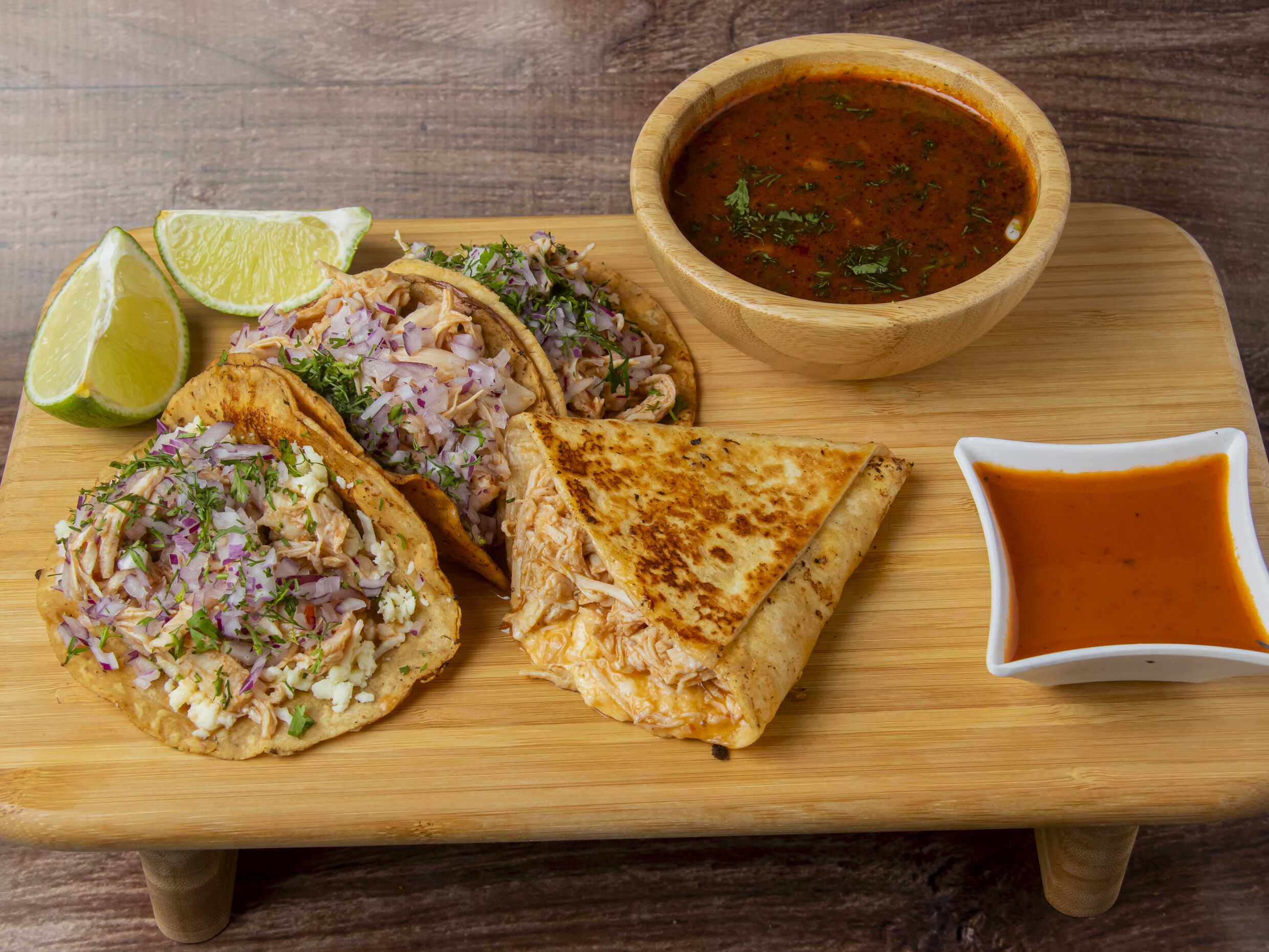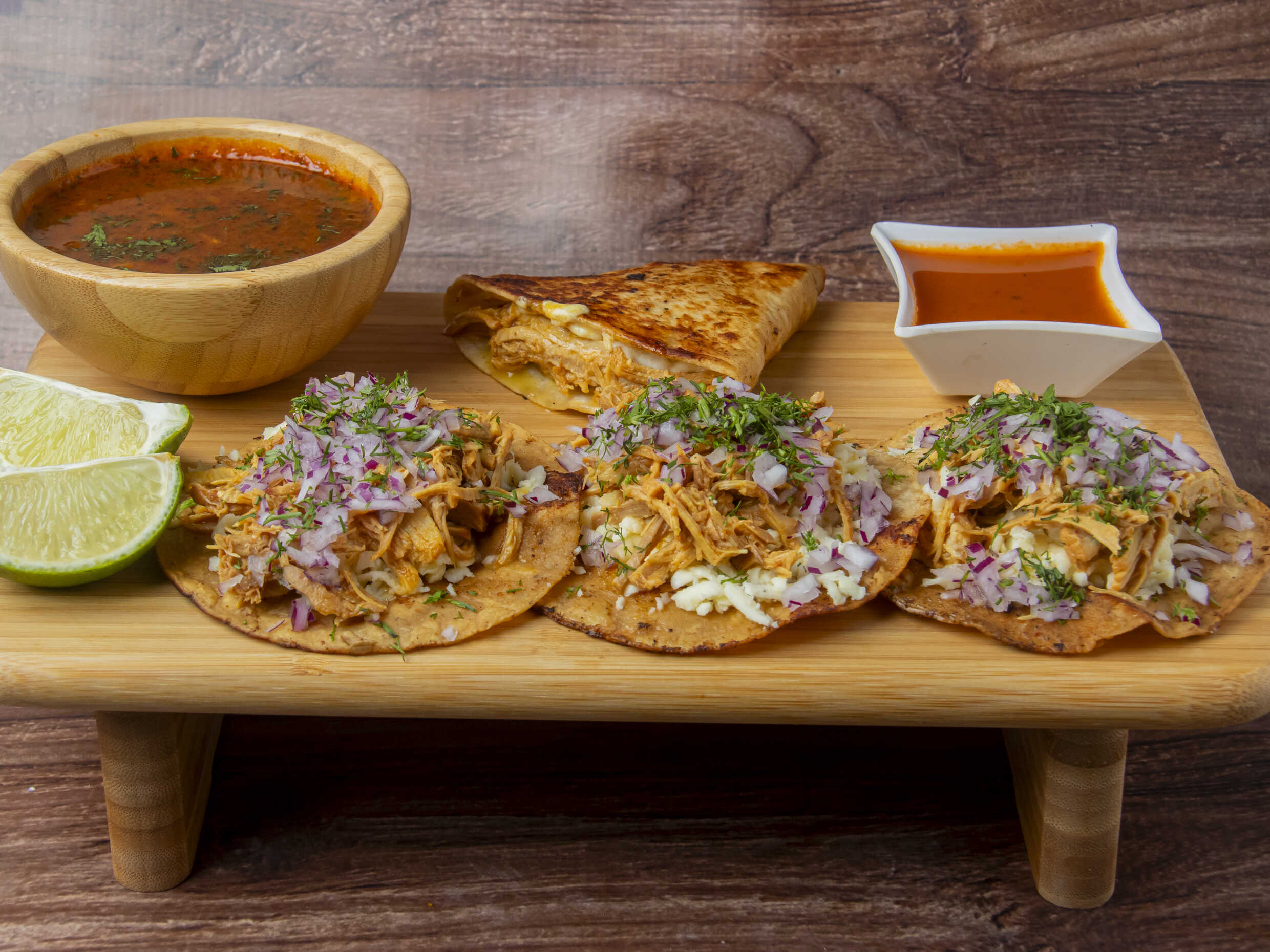 Quesuda de Tinga de Pollo*3 + Birria Personal*1 + Limón*1