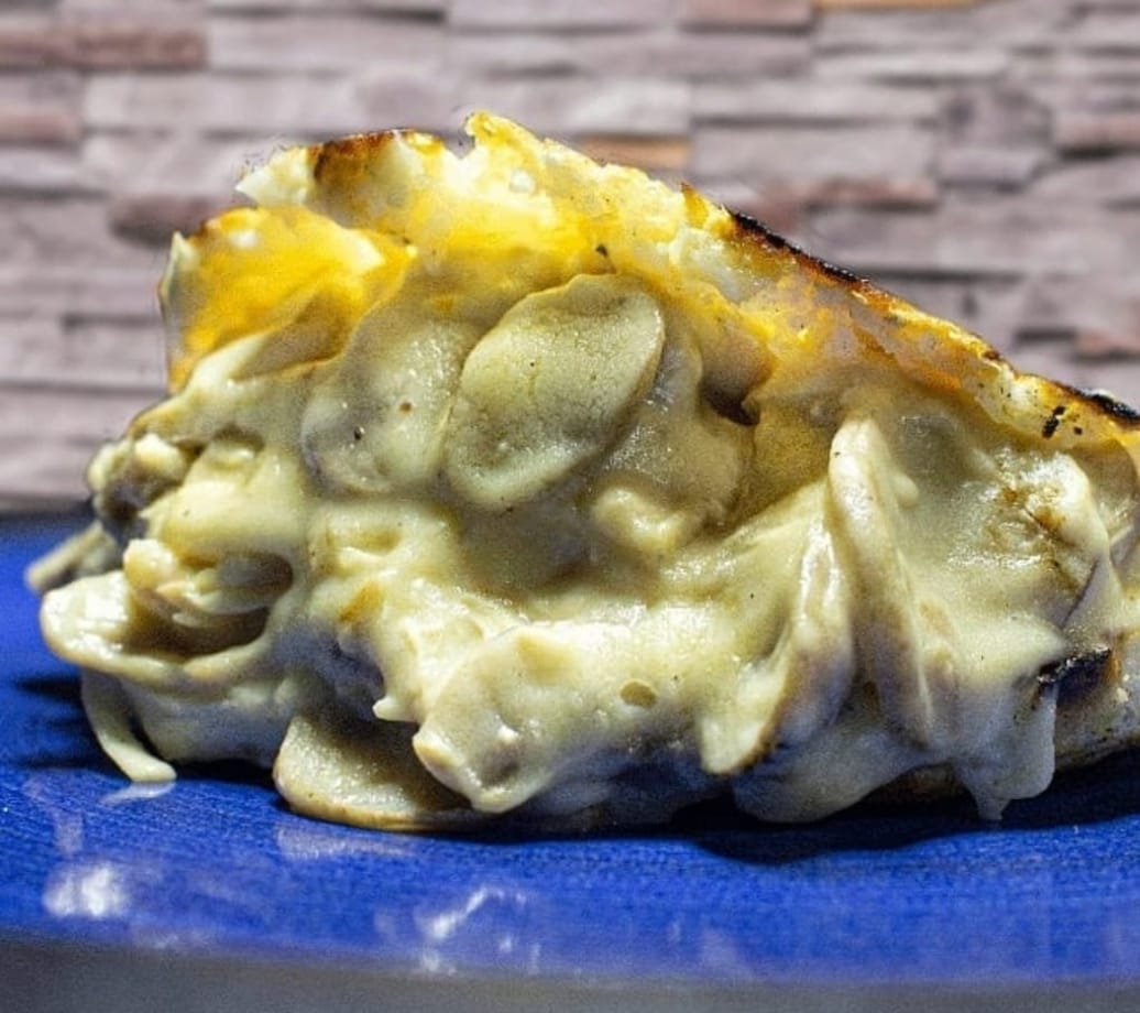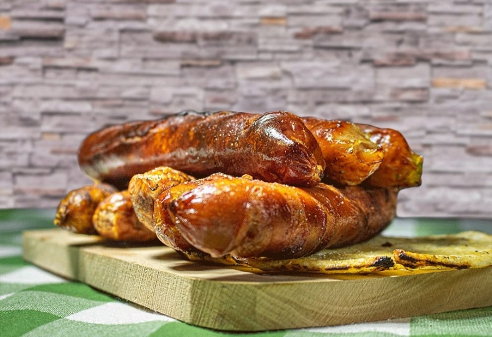 Arepa con huevo, jamón, queso, tocineta y chorizo.