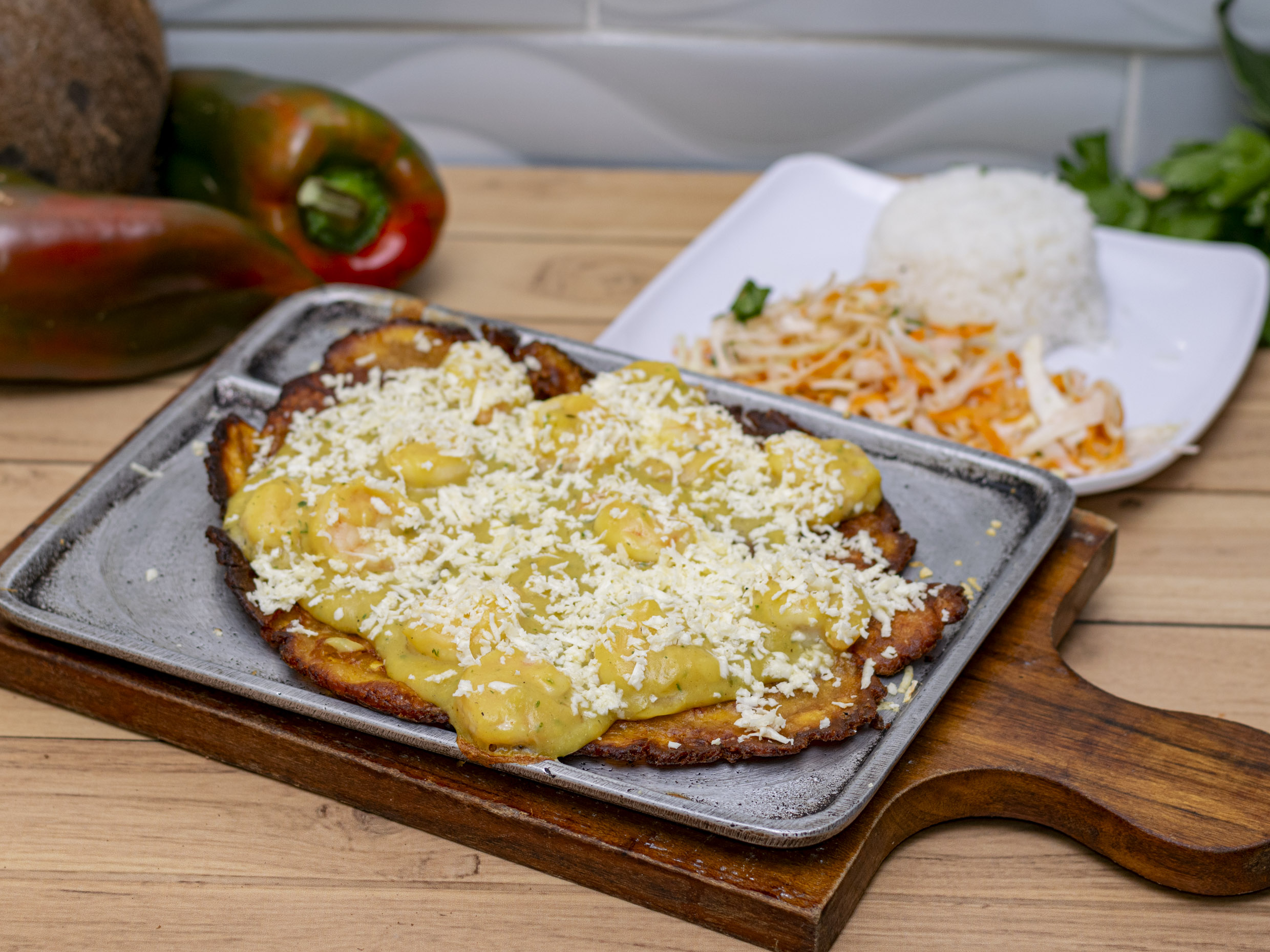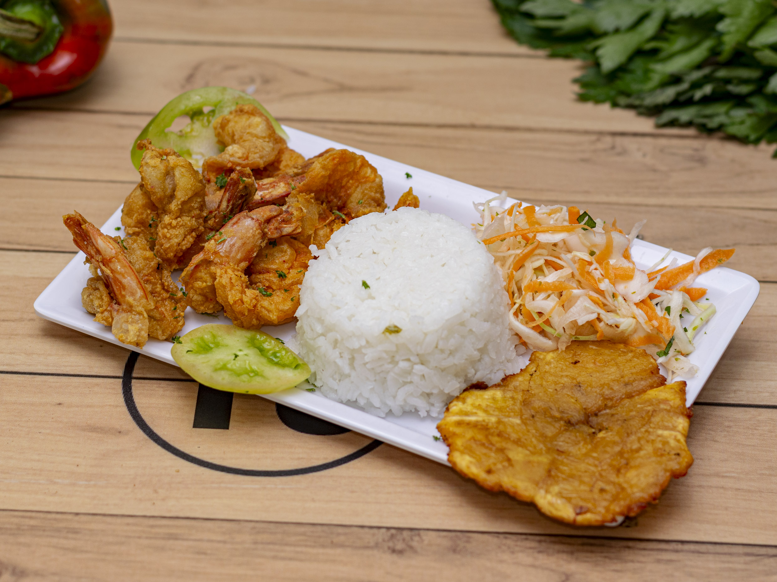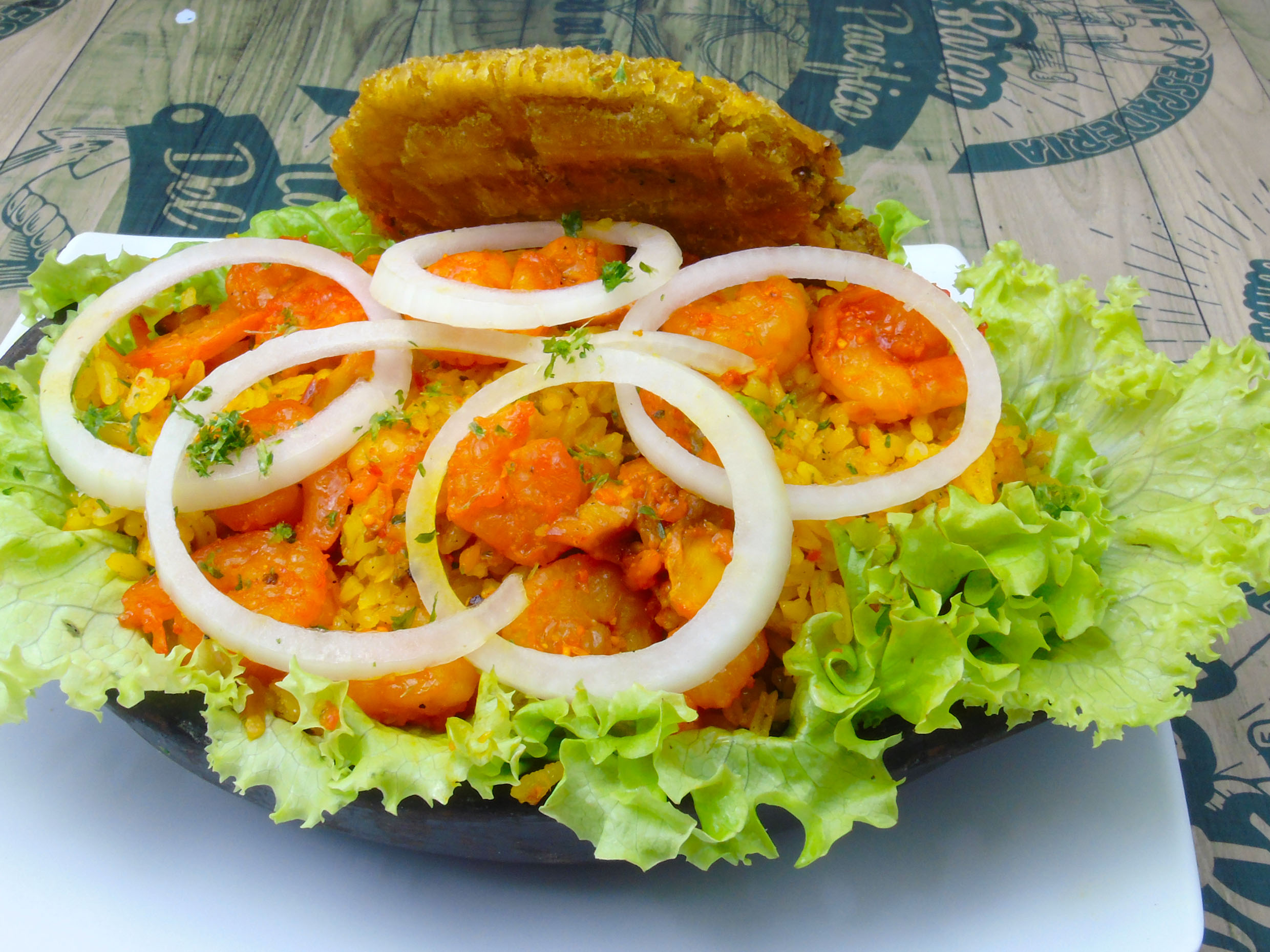 Porcion de patacon con camarones
