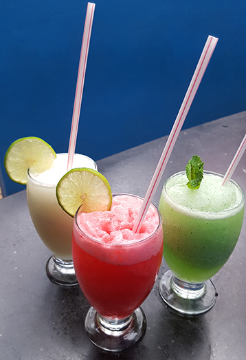 Tortilla de maíz, carne al pastor o pollo, lechuga, queso, frijol, pico de gallo, guacamole, hot chili.