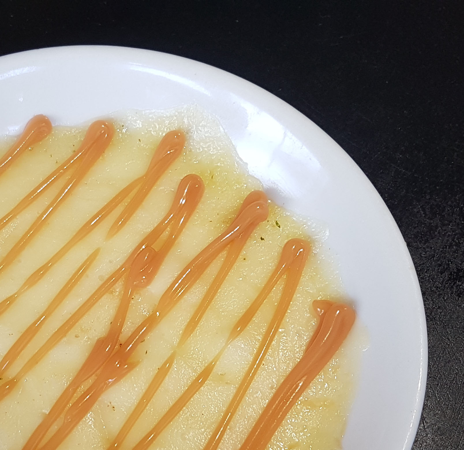 Tortilla rellena de atun, cebolla, pimenton, recubierto con salsa mexicana y queso gratinado.