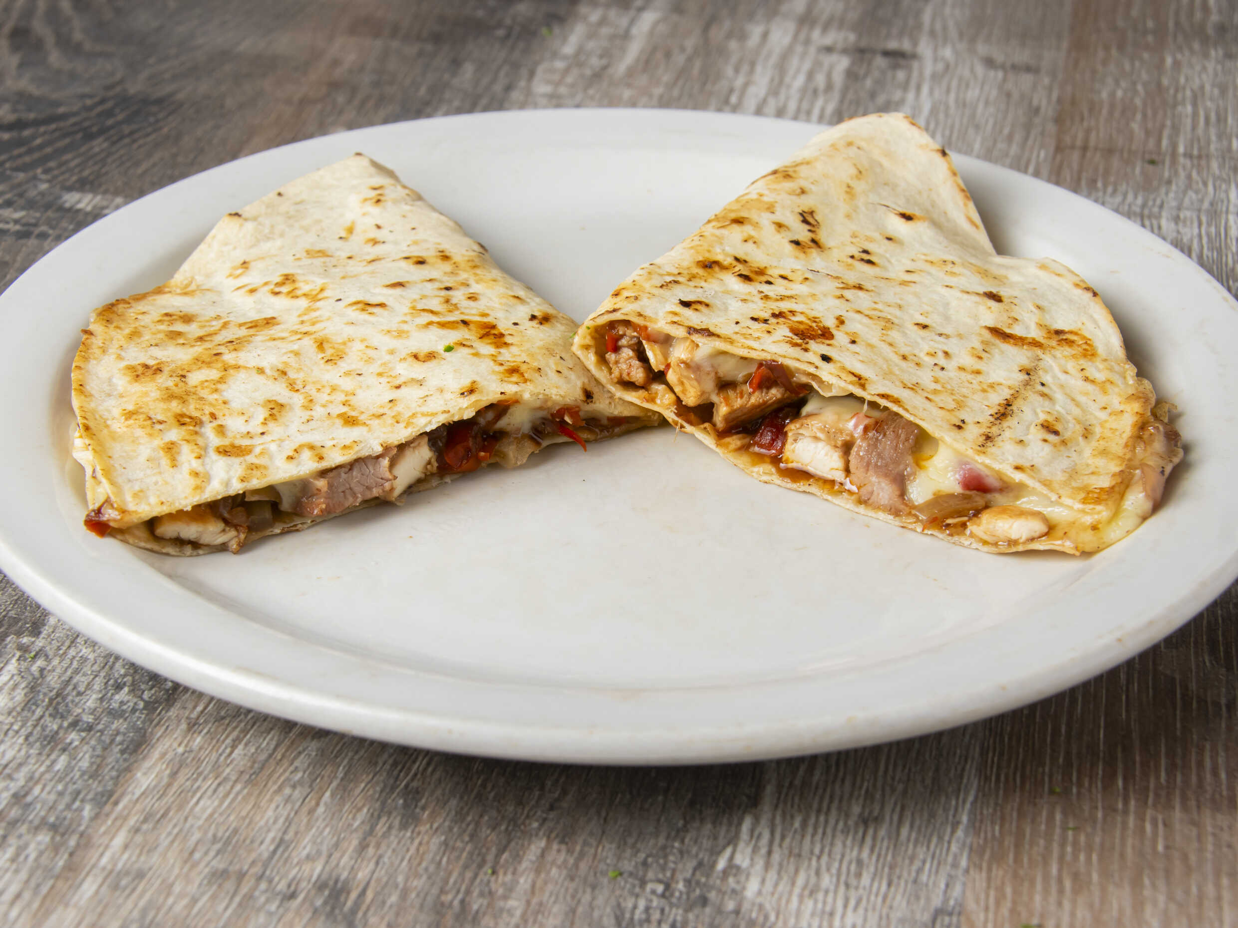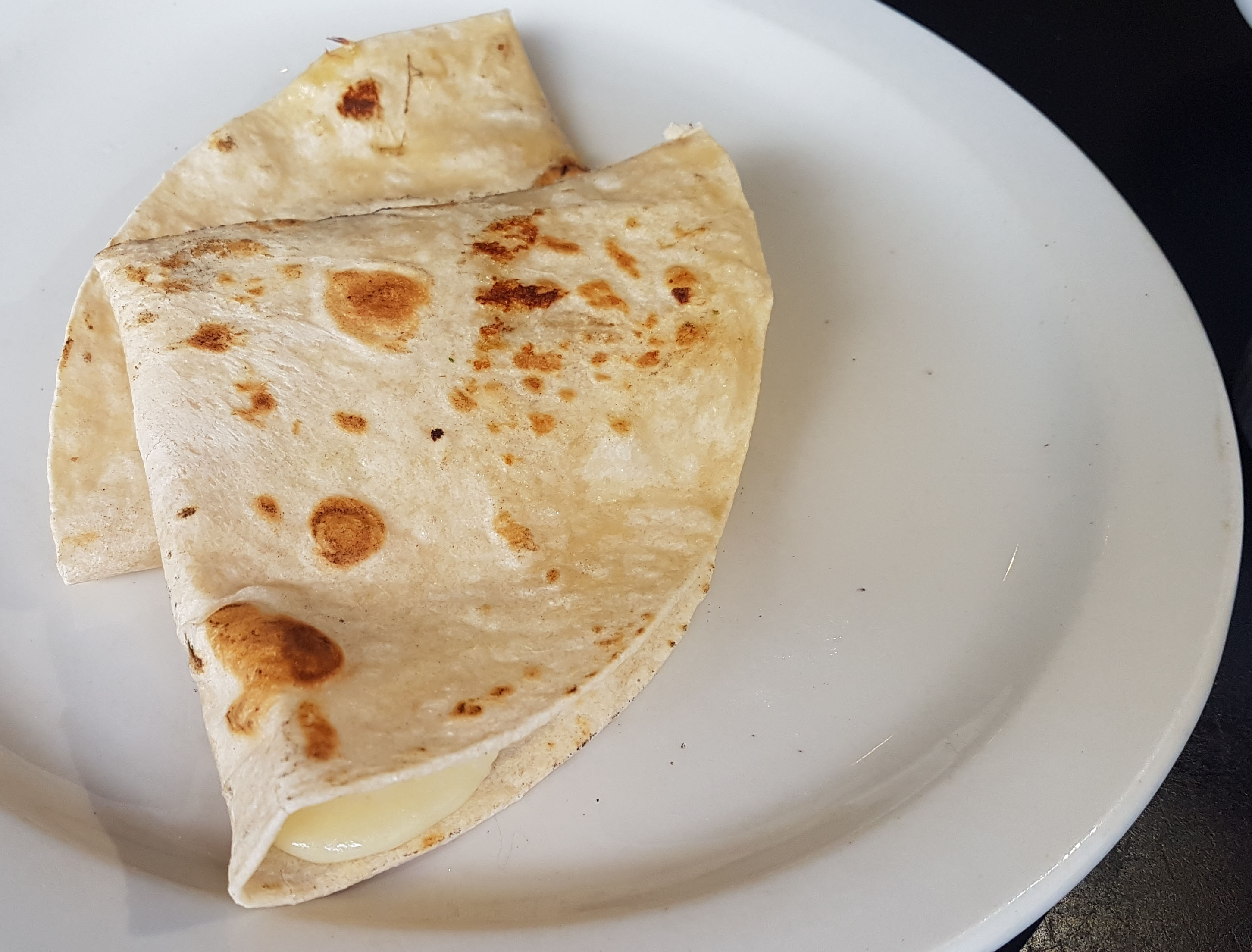 Tortilla, queso, carne al pastor o pollo, hot chili.