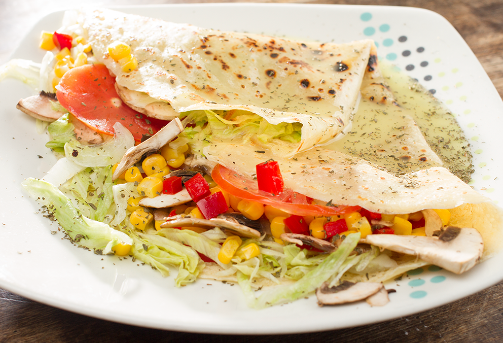 Champiñones salteados, lechuga fresca, pimentón, maíz tierno, tajadas de tomate fresco, queso doble crema y vinagre natural.