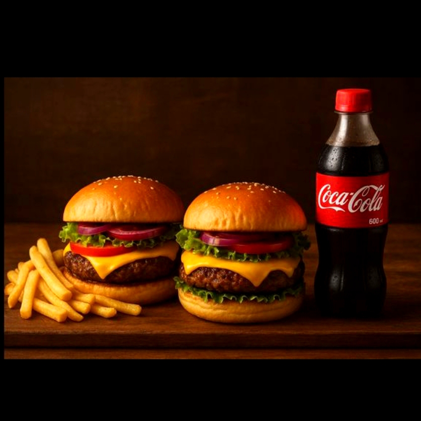 2 hamburguesas clásicas+ 1 porcion de 150gr de papas francesa+ 1 Coca-Cola 250ml
