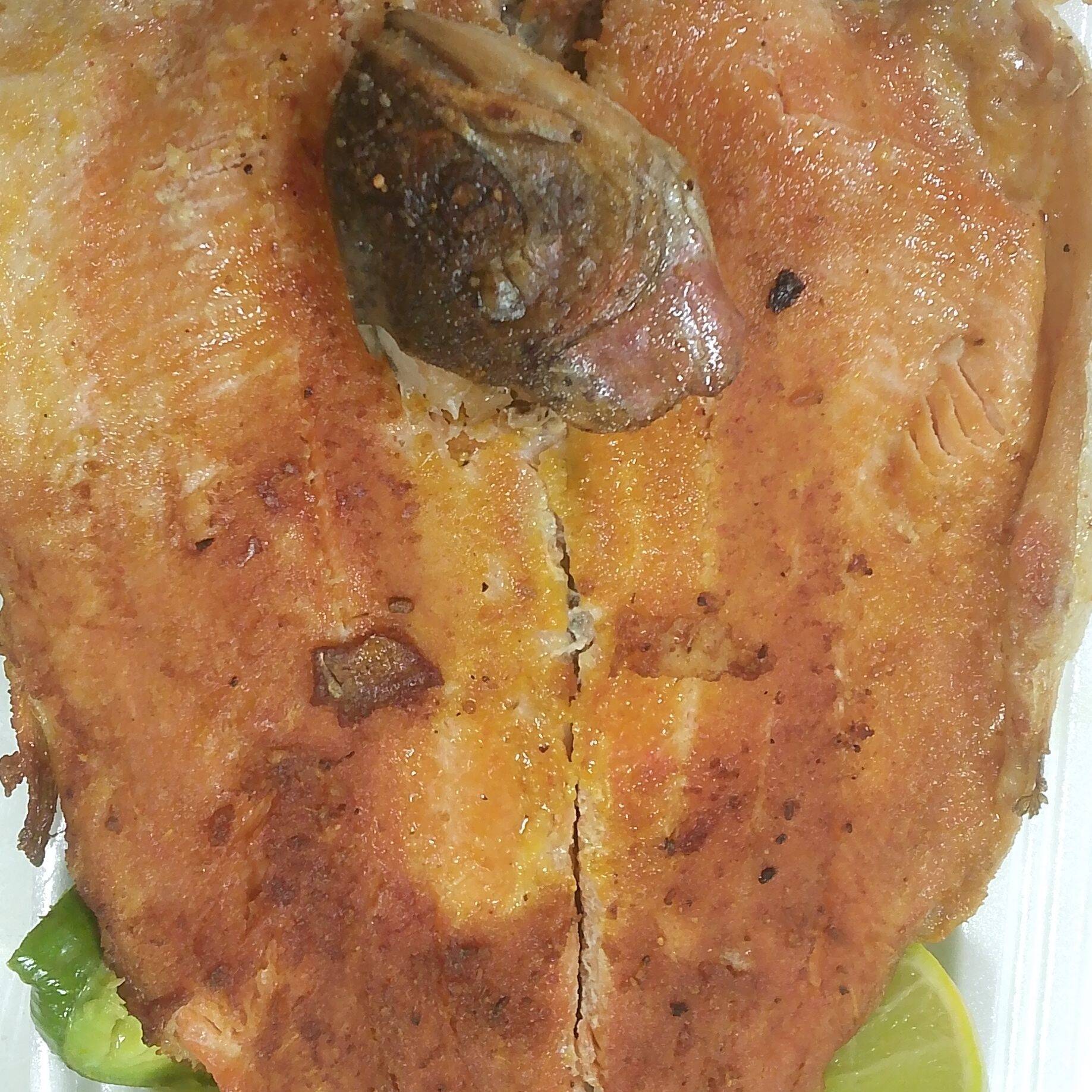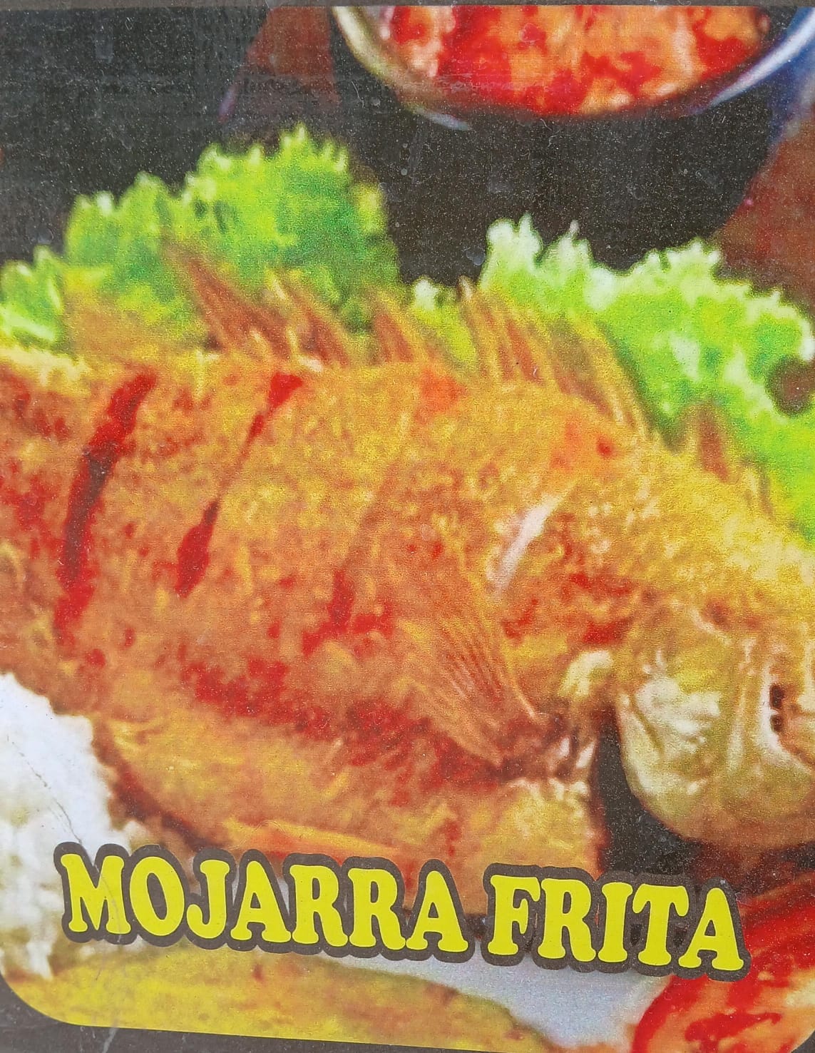 Mojarra, acompañado de arroz, papas a la francesa, ensalada, arepa, sopa o fruta.