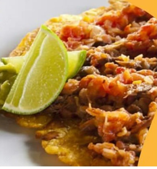 Carne artesanal, maduro en trozos, queso, huevo, maíz, vegetales (cebolla, tomate, cebolla caramelizada), papa francesa y gaseosa personal.