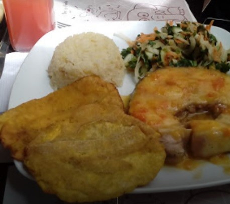 Acompañada de papa criolla, arroz y ensalada de la casa.