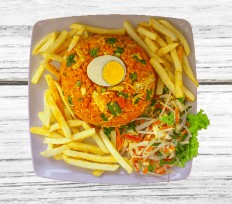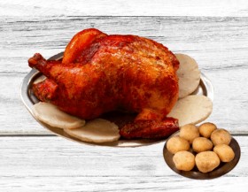 1/2 Pollo asado, arroz chino y papa a la francesa.
