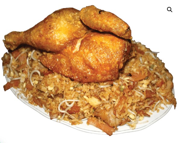 1/4 Pollo asado, arroz chino y papa a la francesa.