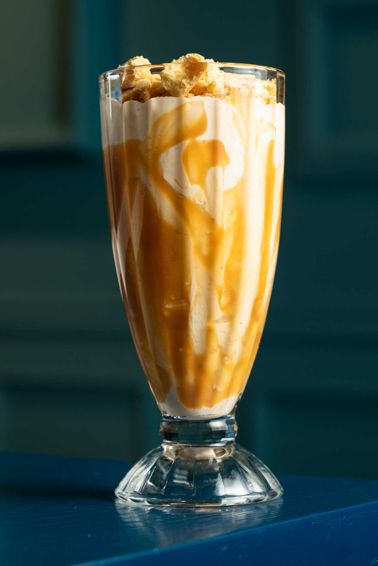 Malteada de 12 oz con base clásica gourmet de vainilla con arequipe de café y un shot de licor de café.
