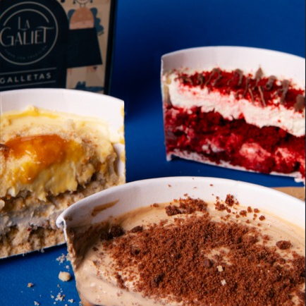 Las galletas más queridas de La Galiet ahora en versión de capas con ganache y relleno. Un postre suave, lleno de sabor y textura. Sabor a elección.