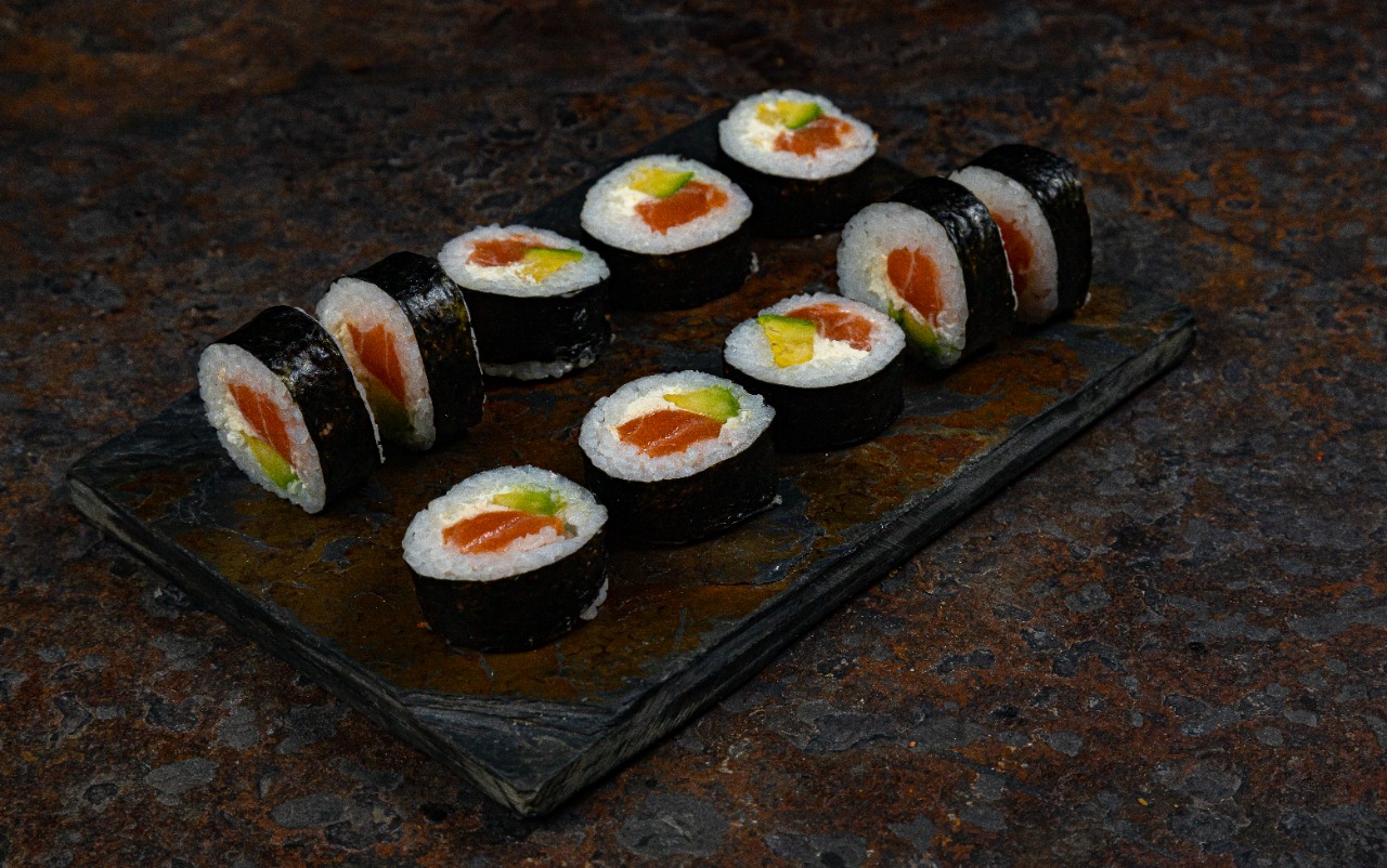 Una combinación perfecta entre aguacate y pepino europeo acompañado de queso crema, envuelto en ajonjolí, tamaño a elegir .