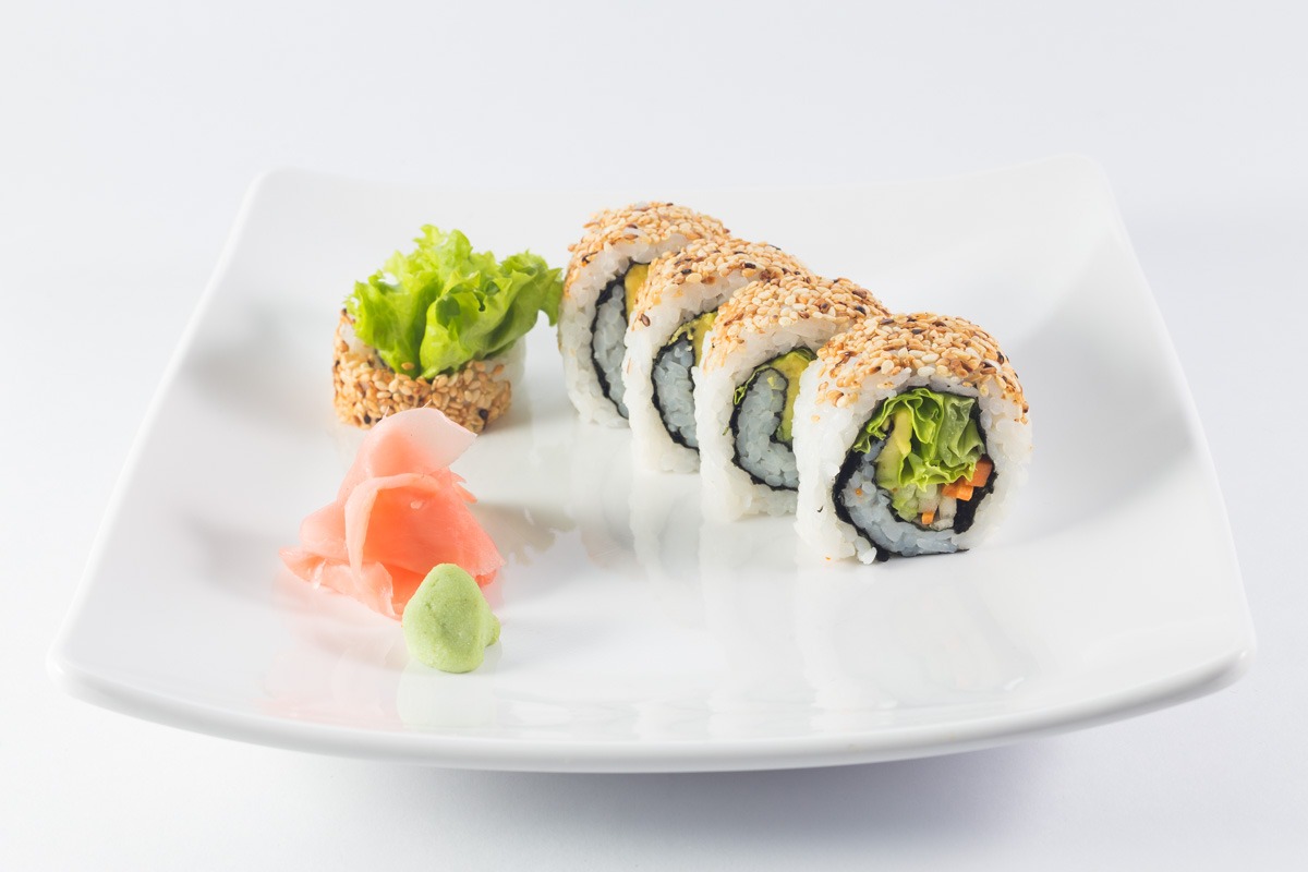 Para los amantes de los vegetales, disfruta zanahoria, pepino en julianas, aguacate y lechuga envuelto en ajonjolí.