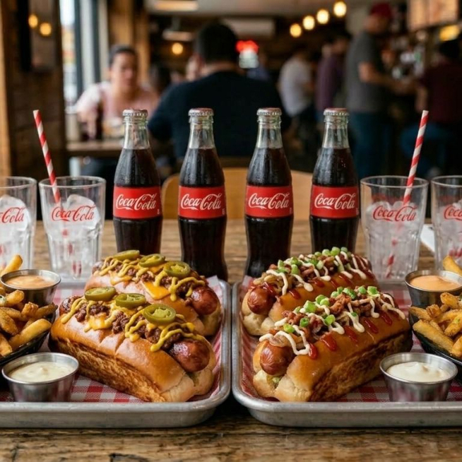 Pan artesanal chorizo santarosano jamón, tocineta, pico de gallo, queso cheddar, papas chips y salsas